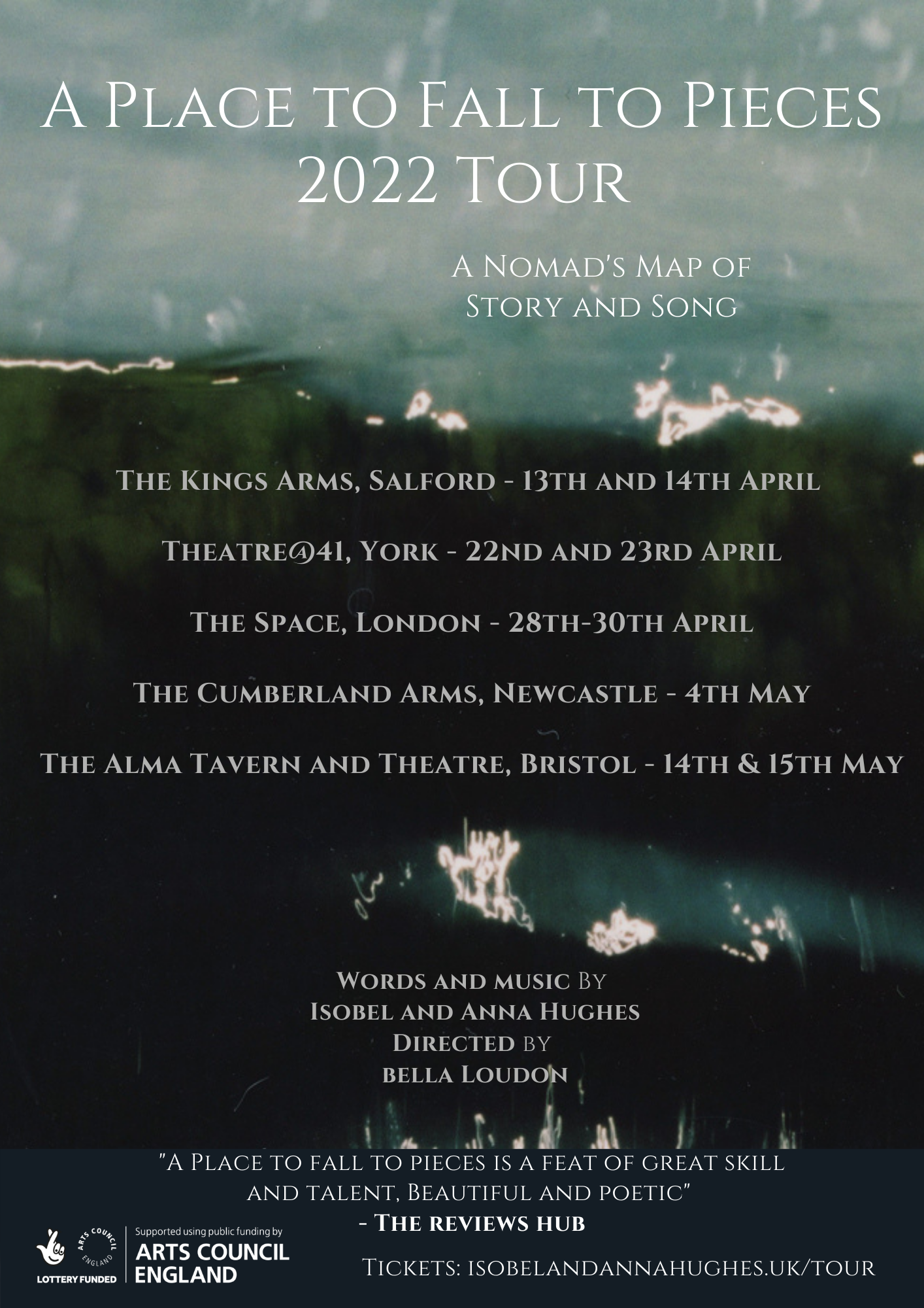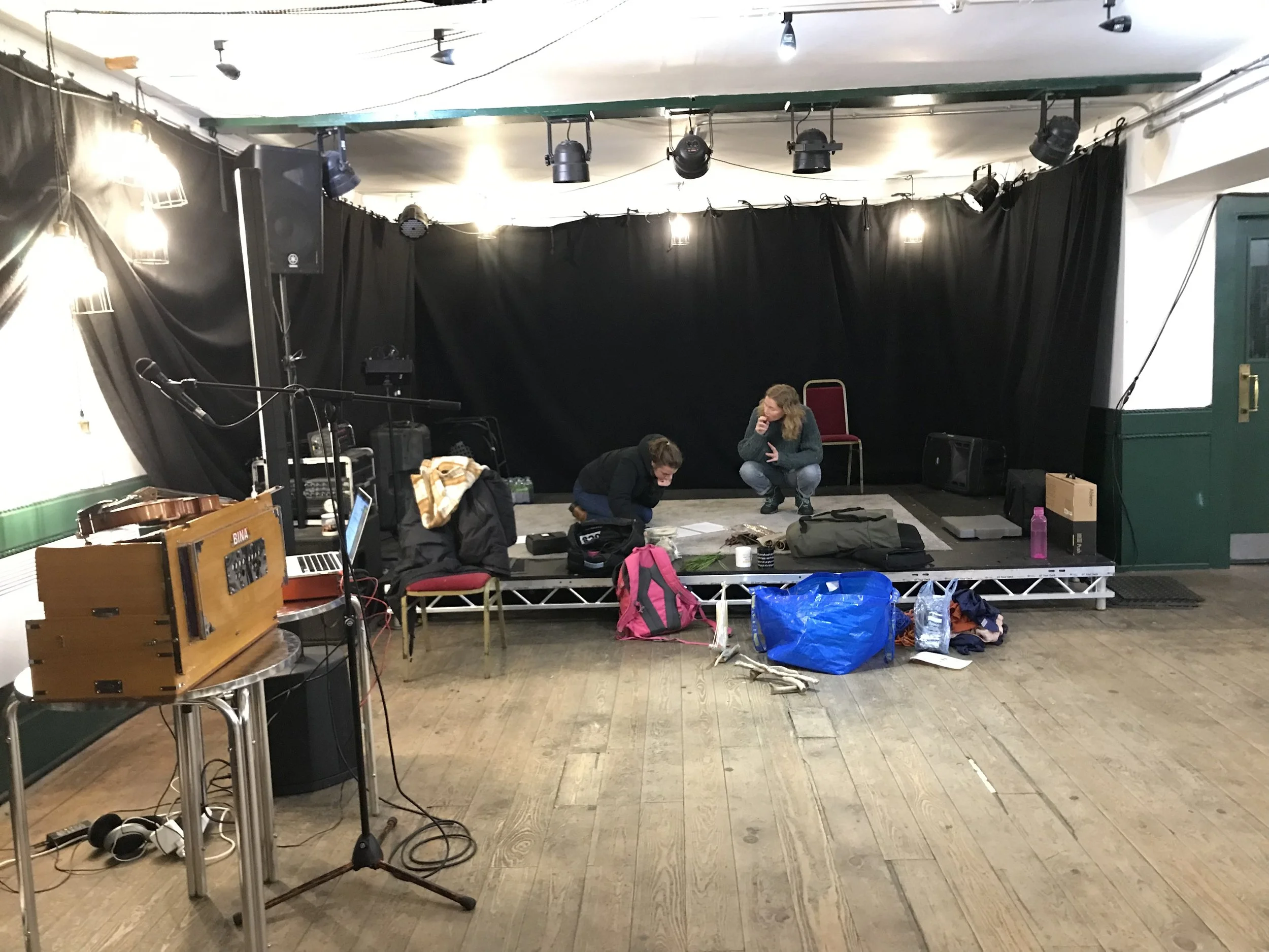 Then, in a six hour round trip from Nottingham, our designer Erin Fleming delivered our Island - the set she has so beautifully designed. Just in time for Bella arriving in person - for week two we had a set, and a director, and a warm welcome from The Cumberland Arms, where we got straight to work and both found out we can’t jump from our knees to our feet - maybe by the end of tour?!
