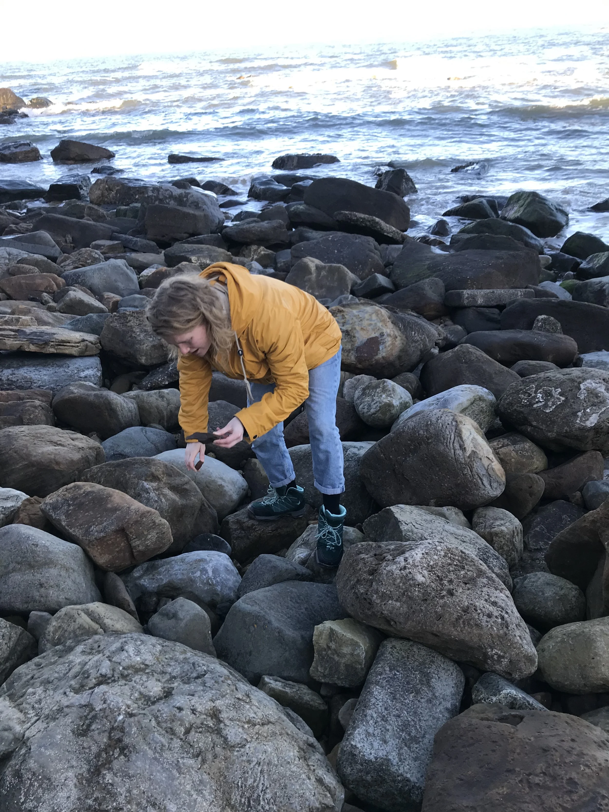 Isobel examining the North-Eastern rocks